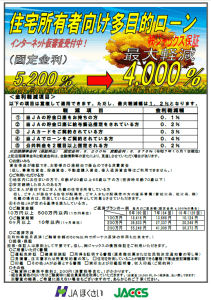 融資利率 | 当組合(JAほくさい)所定の利率に㈱ジャックスの保証料率を加えた利率 |