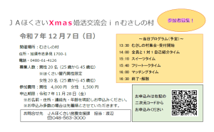 【参加者募集】JAほくさいXmas婚活交流会inむさしの村