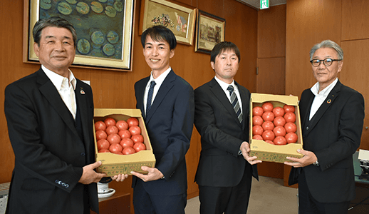 12月18日に、大塚宏組合長とJA役職員らが谷部さん宅を訪れ、栄誉を祝しました。